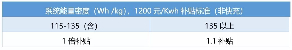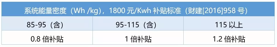 2016年12月29日四部委联合出台的《关于调整新能源汽车推广应用财政补贴政策的通知》正式将补贴标准与电池包 “重量比能量”挂钩: